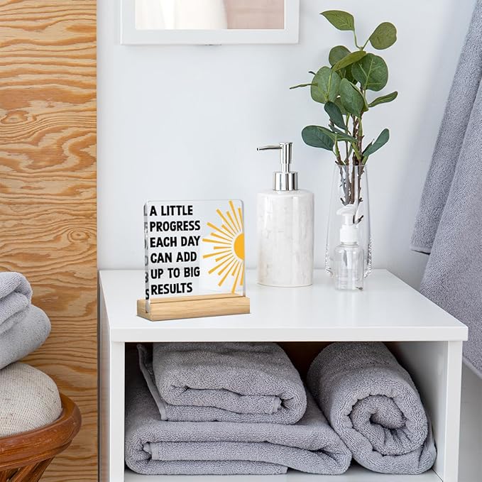 Motivational Mental Health Decoration, Therapy Office Desk Decor, School Counselor Gifts, Gifts for Women Psychologist School Counselor Therapist Halloween Christmas, A Little Progress Acrylic Sign