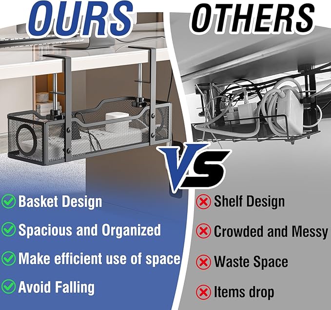 - 【Durable Organizer You Can Rely On】 Crafted from heavy-duty carbon steel, this cable management under desk offers exceptional durability and stability. Its metal mesh structure supports up to 15 lbs, prevents sagging, and reduces dust accumulation, ensuring long-lasting performance.