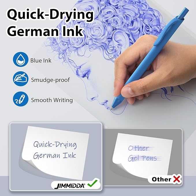 - 【Reliable Long-Lasting】 Long-Lasting Bulk Ink Pen – Write for Miles! JIMMIDDA fine point blue barrel blue ink pens with ink filling exceeds 85%. provides long-lasting performance and minimizing the need for frequent replacements