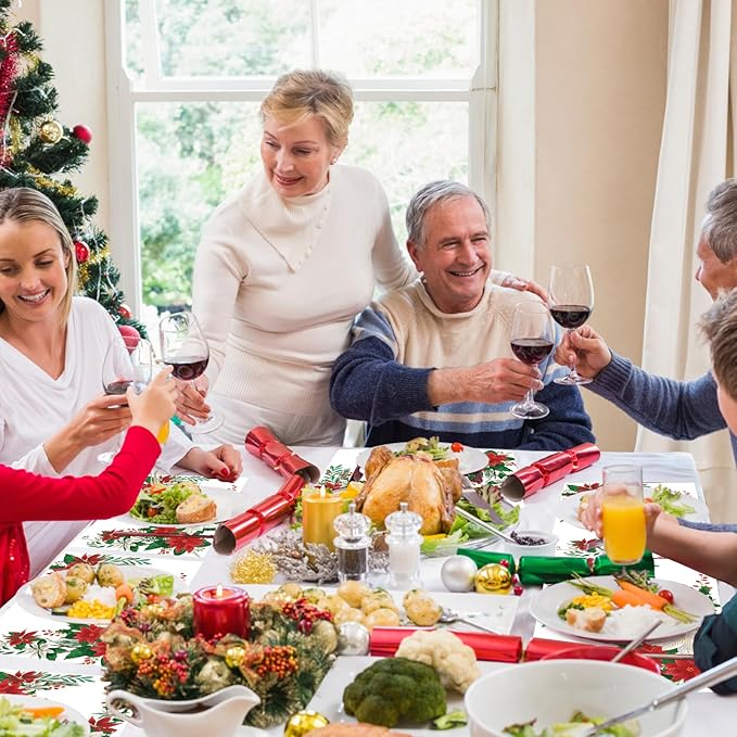 - Package Includes:You will get 50 premium merry christmas dining table mats ensure you have enough placemats to entertain all your guests, with poinsettia flowers and holly leaves on them, perfect for your party while keeping the party setup neat and stylish.