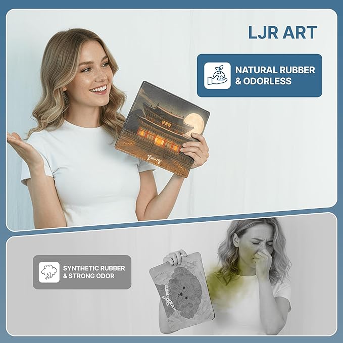 - Unique Korean Palace Design: Featuring an artistic illustration of one of Korea’s most iconic palaces under the moonlight, this travel mouse pad combines elegance and functionality. It’s a beautiful cultural piece that elevates your workspace and makes a thoughtful gift for art and travel lovers alike.