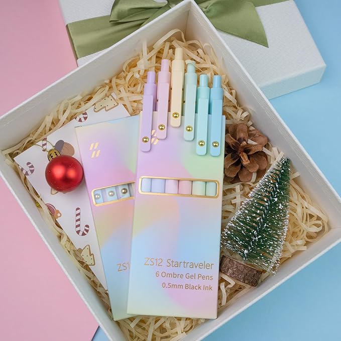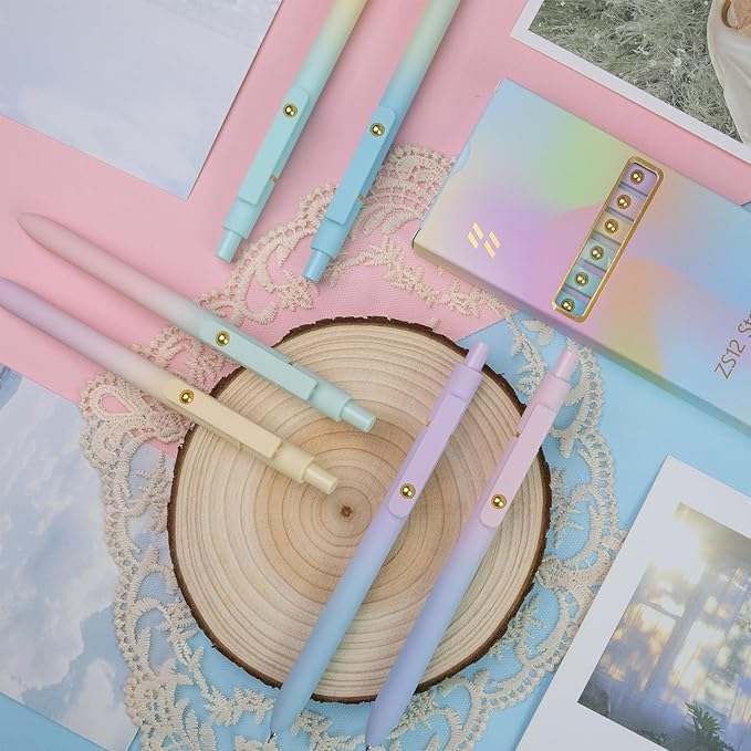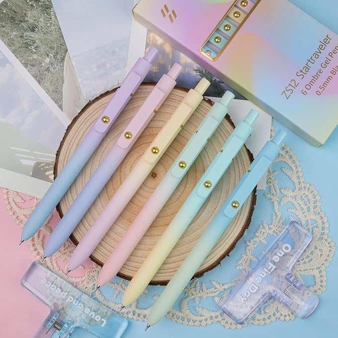 Gel Pens, 6 Pcs 0.5mm Fine Point Smooth Writing Pens Japanese Cute Pens, High-End Series Black Ink Pens for Journaling Note Taking, School Office Supplies for Women Men (6 Pcs Ombre)