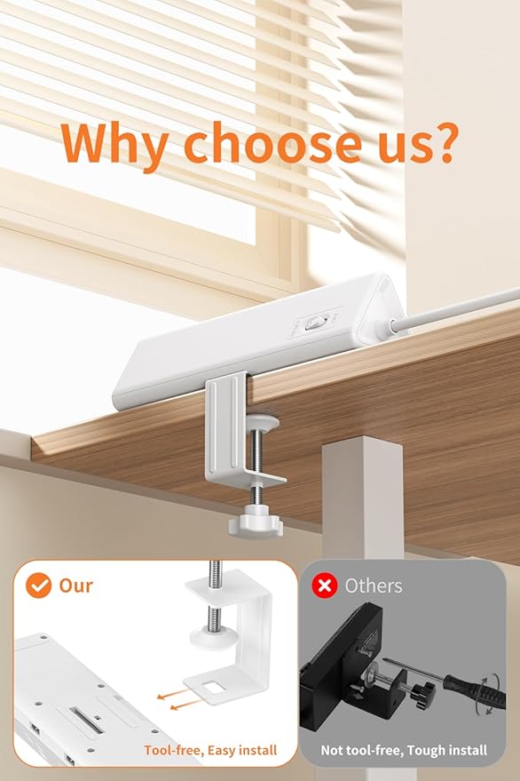 - Easy to Intall: Desktop power strip with USB ports is very easy to mount, you don't need to drill holes or purchase any additional tools, just fix the clamp to the table, and turn the button at the bottom to complete the installation.