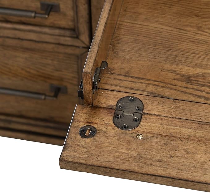 Liberty Furniture Carolina Park Jr Executive Credenza with Keyboard Tray, Locking File Storage for Home Office- Amber Brown Oak Wood