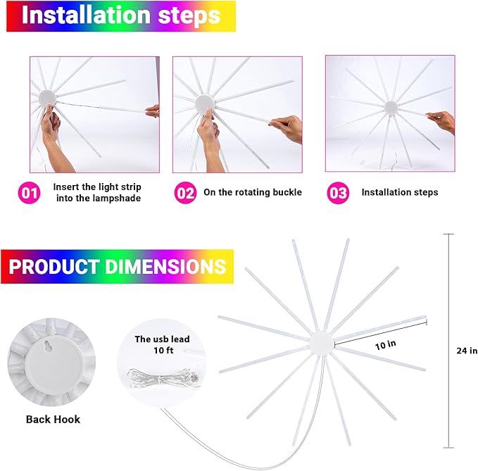- Easy to install: There is a hanging hole on the back of the lamp, just hang it where you want to decorate.(Hook not included) You can also use punch-free hooks.(For windows or glass doors)