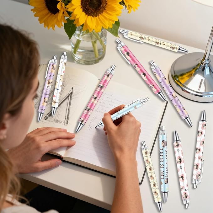 - 【Pug Themed Design】These ballpoint pens feature a charming Pug theme, featuring a variety of adorable pug images, including pictures of pug dogs in their daily lives and at play. These lively and engaging designs make writing more enjoyable and fun, making them an ideal choice for enhancing work and study environments