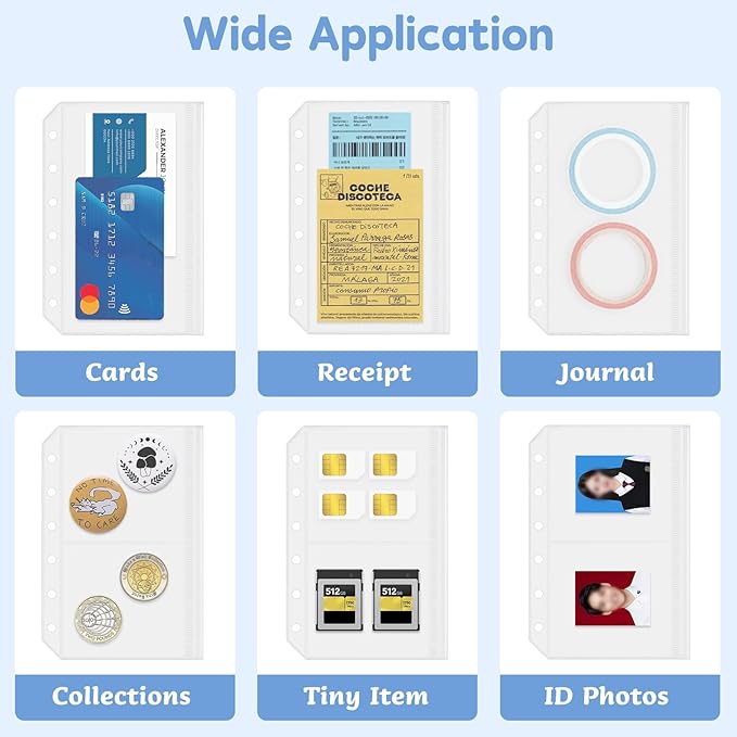 - Multi-functional: These A7 binder inserts can hold cash, jewelry, cards, photos, stickers, washi tape samples, journal supplies, stamps, collections, receipts, coins, specimens, etc. Lightweight and portable, it can be used at home, in the office, or while traveling
