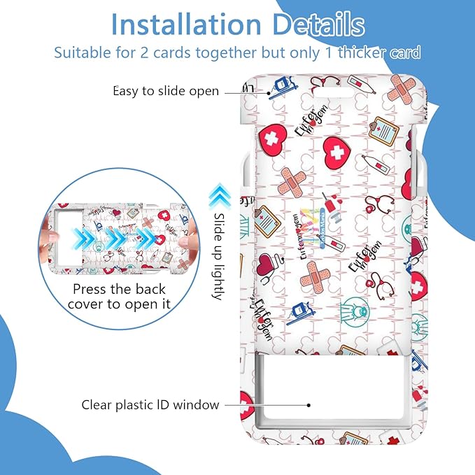 - 【Convenient and Quick】The double-sided sliding cover design is beautiful, sturdy and lightweight. The scannable transparent film is against water and stain-against eliminating the need to scratch the ID card cover each time the ID card is used,quickly swipe your card to make punching in and out faster