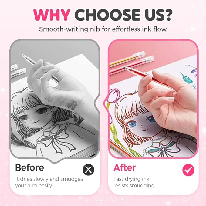 - SAFE FOR USE: All of the Gel Pens Acid-free and non-toxic ink doesn’t smear, fade, or skip. glitter gel pens for kids, colorful pens, markers pens for Adult Coloring Books, School Art Projects, Party Invites, Greeting Cards, DIY Decoration, Letters to Friends