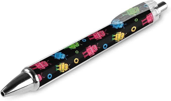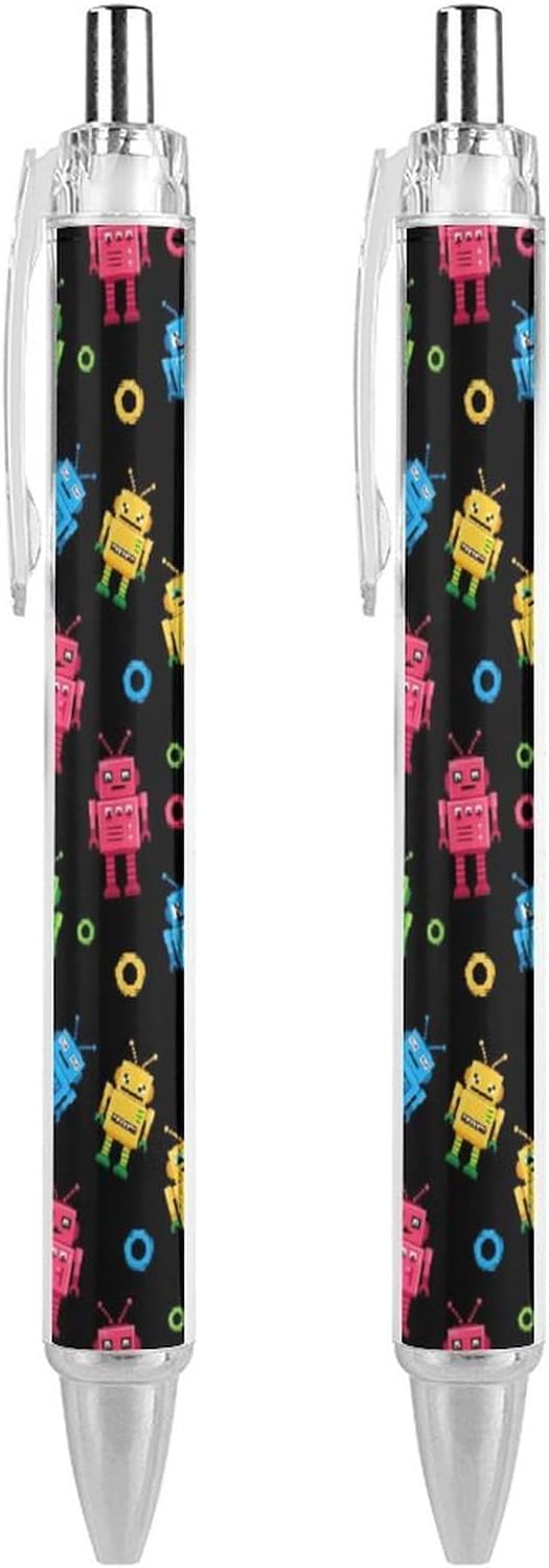 Cute Ballpoint Pens for Men Women, Colorful Robot Pattern Black Writing Pens Retractable Refillable Ink Pen for Home Office Stationary, 0.5mm, 2 Pcs