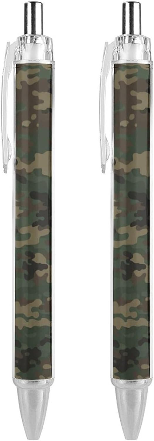 Womens Smooth Writing Pens, Cute Retractable Ballpoint Pens with Black Ink, Army Military Camouflage Tiger Stripe Camo Ball Point Pen Stationary for Teacher Writer, 0.5mm, 2 Pcs