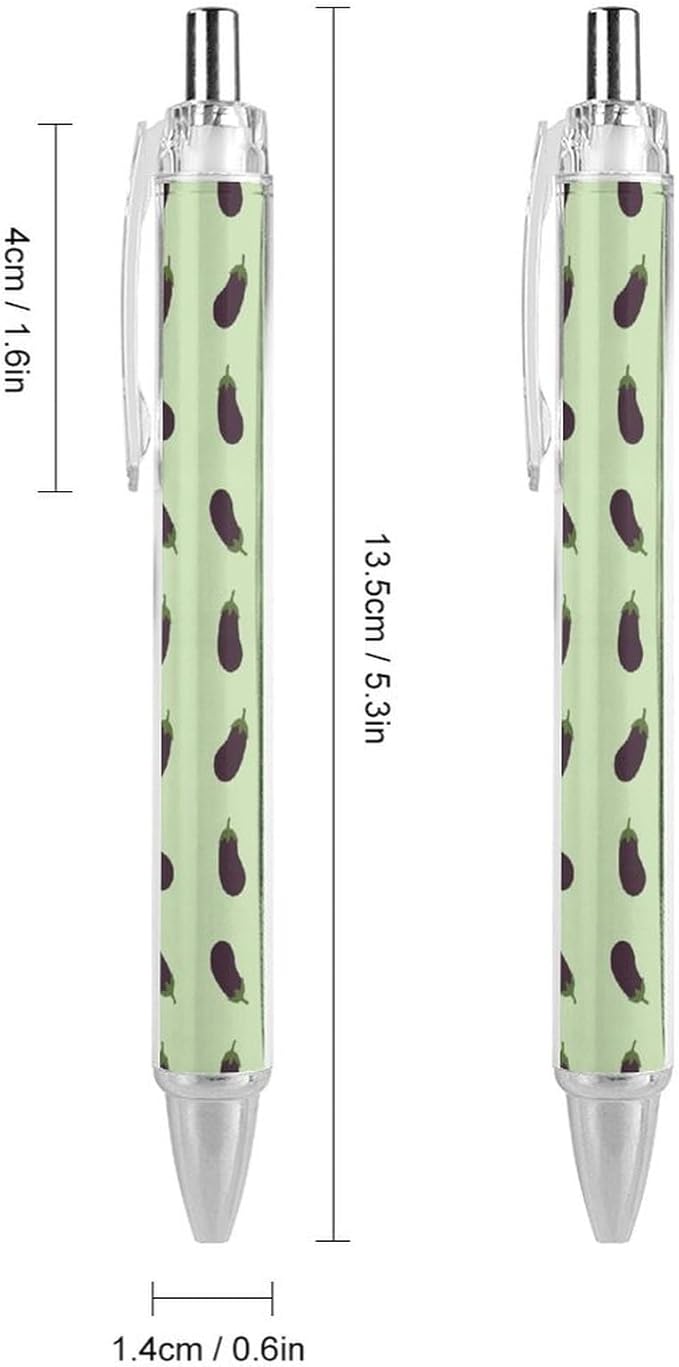 2 Pcs Purple Eggplant Pattern Pens with Black Ink, Womens Retractable Writing Pens, Refillable Ball Point Pen 0.5mm for Office Supplies Teacher Writer