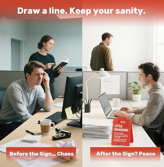 - Funny Desk Signs: Compact and eye-catching, the red sign adds a pop of color to any workspace. Perfect for teacher desk decor, home offices, or shared work areas. The modern design fits neatly among your funny desk accessories for work, coffee mug, or laptop setup