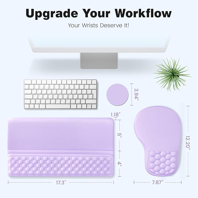 Ospelelf Ergonomic Mouse Pad and Keyboard Stand Wrist Rest Set, Memory Foam Comfort, Pain Relief for Typing, Office Desk Accessories, Purple
